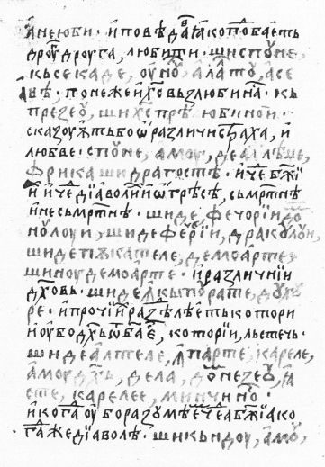| | să ne iubim şi spuse că se cade unul alalt să se iubească după ce şi Hristos preaiubi noi. Arătă, amu, den toate chipurele frica şi iubovul, şi feciorii Zeului şi feciorii Diavolului şi de păcate de moarte şi nu de moarte şi în toate chipurele duhure şi alalte împarte carele, amu, Duh de la Dumnezeu iaste şi carele înşălătoriu şi cum | |