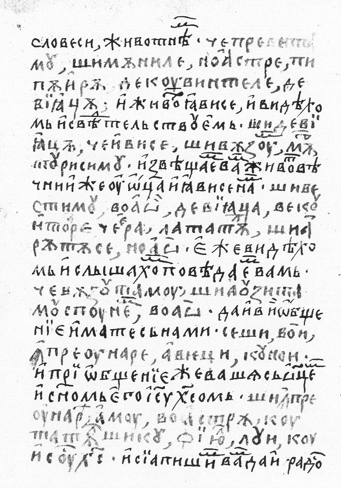 | de ce-am căutat şi cu mîinile noastre pipăit-am de cuvîntul viaţeei - şi viaţă ivi-se şi văzut-am şi mărturisim şi vestim voao viaţa veacilor ceaia ce era în Tatăl şi ivi-se noao -, e de ce văzum şi auzim spunem voao, de şi voi împre