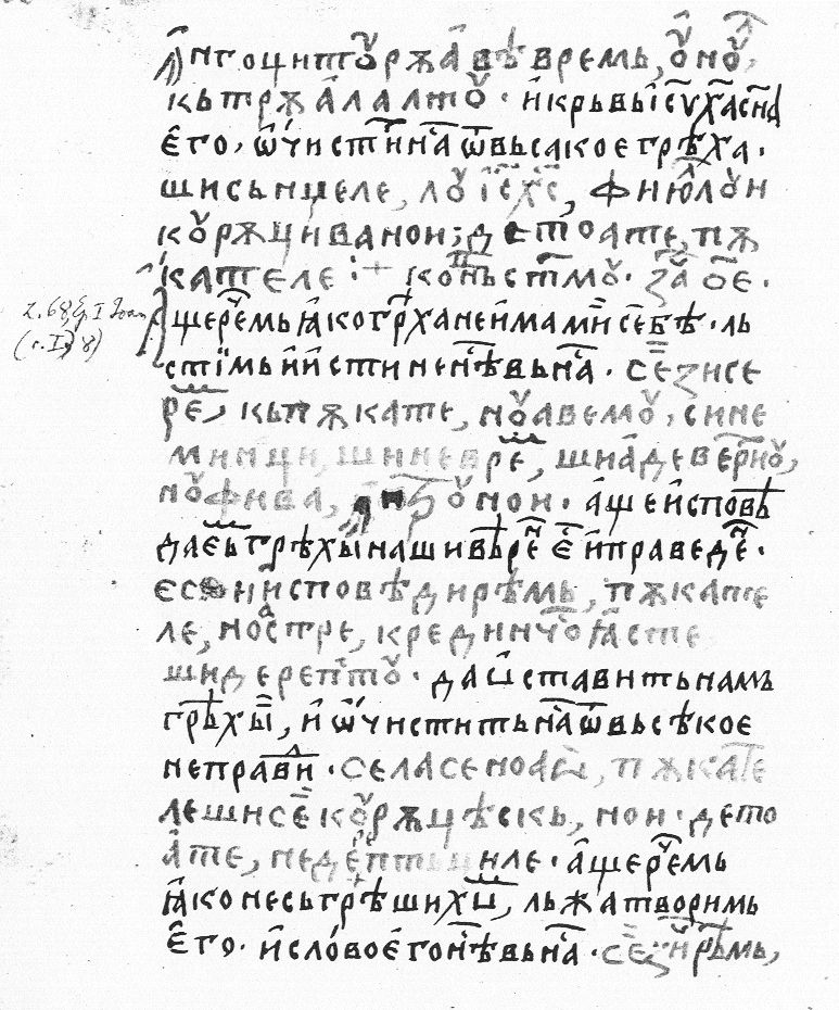 | | împreunare să avem unul cătră alalt şi sîngele lu Isus Hristos, Fiiul lui, curăţeaşte noi de toate păcatele. ¤ E s-am zice că păcate nu avem, înşişi ne prilăstim şi deadevărul nu-şi e întru noi. E s-am spovedi păcatele noastre, credincios iaste şi derept lăsa-va noao păcatele şi curăţi-va noi de toată nedereptatea. E s-am zice | |
