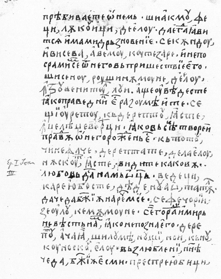 III 1Vedeţi care iuboste deade nuao Tatăl se feciorii Zeulu chemămu-ne! Dereptu aceaia şi lumea nu şti noi că nu cunoscu elu. 2Prespre iubiţi,