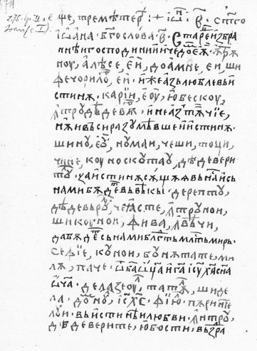 Bătrînul, şi aleaseei doamne şi feciorilor ei, cei ce iubesc eu întru adevăr, şi nu eu numai, ce şi toţi înţelegătorii deadevărul, derept deadevărul fiind întru noi şi cu noi să fie în veac. De să fie cu noi dulce-dată milă şi pace de la Dumnezeu Tatăl şi de la Domnul Isus Hristos, Fiiul Tatălui întru deadevăr iubov. | |