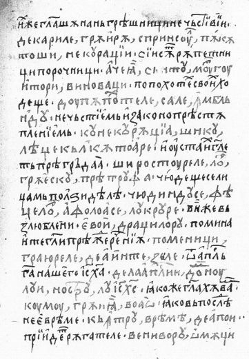 | | ce grăiră spri-nsul păcătoşii necuraţii. Aceia sînt răpitori vinovaţi, după pohtele lor îmblînd necurăţie, şi Leage-călcători, şi gura lor grăiaşte preatrufă mirîndu-se feaţeloruşi lucrure de folos”. E voi, iubiţilor, pomeniţi graiurele mai de înainte zicerile de la apostolii Domnului nostru Isus Hristos. Cum grăiră voao că „În vreamea de apoi veni-vor bătjocuritorii | |