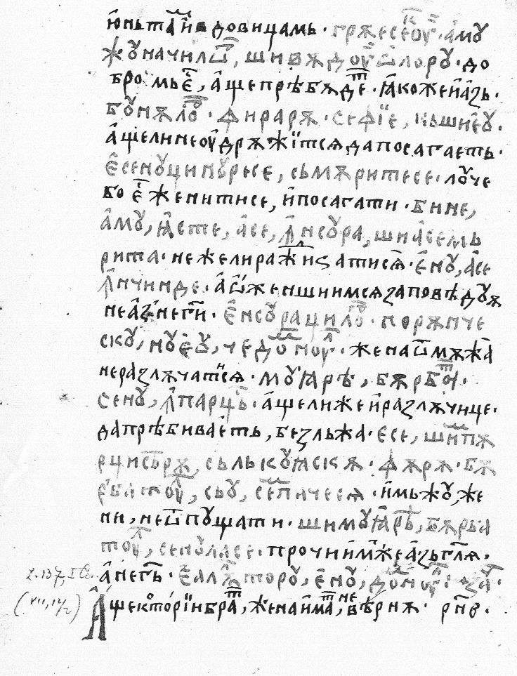 | | Însă eu grăesc celora ce-s slobozi şi văduolor. Lor ar fi bine de-ară fi ca eu, de ei nu se pot ţinea să se mărite mai bine şi să se însoare decît să arză. Iară căsătorilor eu le grăesc, ce nu eu, ce Domnul, ca muiarea să nu se desparţă de bărbat, iară de se va despărţi ia să lăcuiască fără bărbat sau să se împace cu bărbatul, şi bărbatul muiarea să nu o lase. Alăltor grăesc eu, nu Domnul. | |