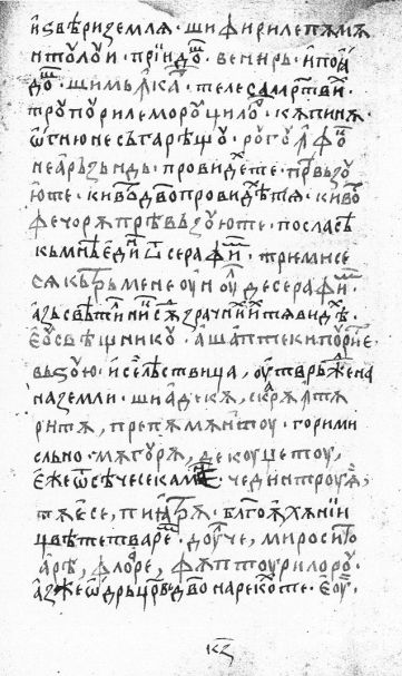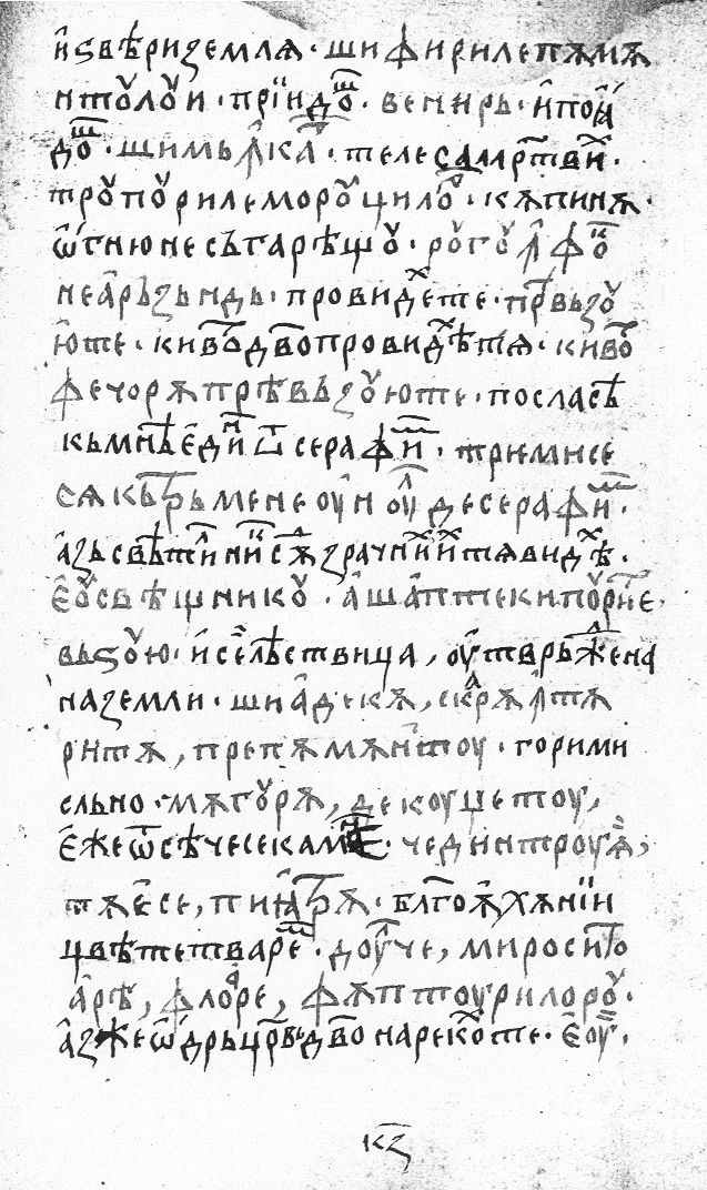 | | şi firile pămîntului veniră şi mîncar[ă] trupurile morţilor, rugu în foc nearzînd, preavăzuiu-te, chivot, fecioară, preavăzuiu-te, triemise-se cătră mene unul de serafimi, eu, sveaştnicu a şapte chipuri te vădzuiu şi adecă, scară întărită pre pămîntu, măgură de cugetu ce dintru ia tăe-se piiatră dulce mirositoare, floare făpturiloru, eu, | |