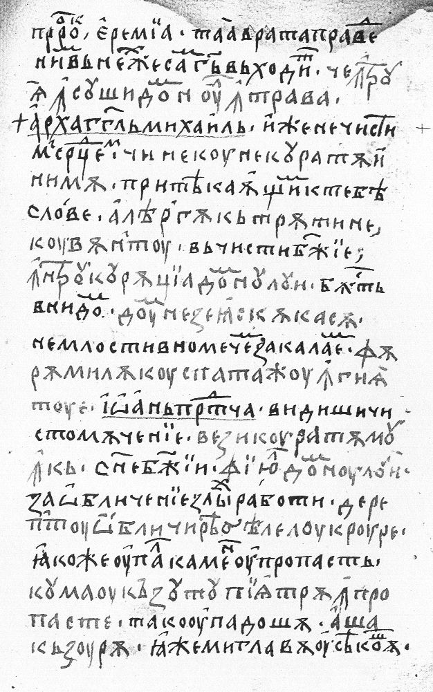 | | ... Ce întru ia însuşi Domnul întra-va... Cine cu necurată inimă aleargă cătră tine cuvîntu întru curăţia Domnului dumnezeiască casă fără milă cu spata junghiiatu e... Vezi curată muncă Fiiul Domnului dereptu oblicirea rreale lucrure cum au căzutu piiatră în propaste aşa căzură | |