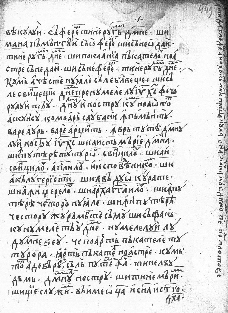 | veacului să fereşti, Tine rugăm Doamne! Şi mana pămîntului să o fereşti şi să ne-o dai, Tine rugăm Doamne! Şi pocaania păcatelor noastre să ne dai şi să ne fereşti. Tine rugăm Doamne!183. Cum aceaste nuiale să le blagosloveşte şi să le svinţeşti, Doamne, pre numele lu Isus Hristos, feciorului tău, Domnului nostru! Cum noao tot ascunsu comoară sau bani în pămîntu, vare aur, vare argint, în vîrtutea Domnului nostru, Isus Hristos, şi ai Sfîntă Mărie, Doamna, şi în putearea tuturor svinţilor şi ai svinţilor apostolilor... şi a călugheri... şi a văduo curate şi a îngerelor şi arhanghelilor şi în putearea cestoro nuiale şi în putearea cestoru jurămînte să iau şi să fac cu numele tău, Doamne, numele lui, lu Dumnedzeu ce poartă păcatele tuturora! Iartă păcatele noaste, cum tot adevărul să-l putem fac[e]! Tine lăudăm, Domnul nostru şi tine mărim şi ţie slujim”. ...